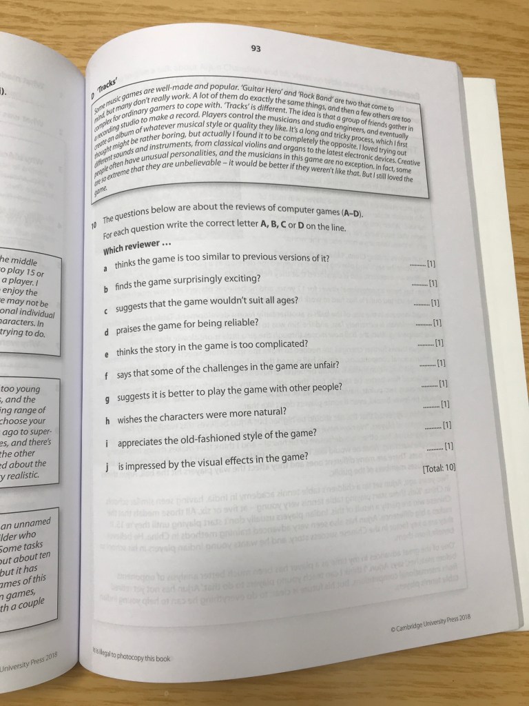 Understanding of the reading passages. Comprehension skills and answering questions based on the reading.